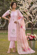 Add timeless elegance to your ethnic wardrobe with this beautiful pink unstitched suit set crafted in premium Permian Roman Silk fabric. The top features delicate embroidery work that enhances its festive and designer appeal. Paired with a fancy Banarasi digital printed dupatta, this suit set offers a rich and graceful look perfect for festive occasions, family gatherings, and special events. The soft santoon bottom fabric ensures comfort and easy tailoring for a perfect fit.