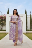 Add a touch of elegance and sophistication to your ethnic collection with this beautifully crafted lavender modal silk unstitched suit set. Designed for women who love graceful traditional wear, this ensemble is made from premium modal silk fabric, offering a smooth texture, luxurious feel, and elegant drape.